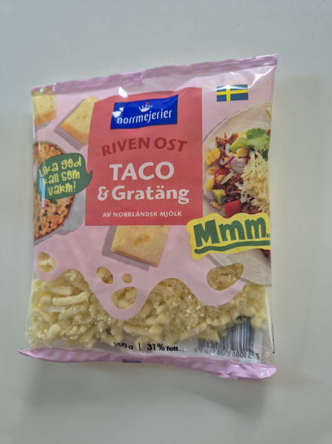 Förpackningen till Norrmejerier Riven Ost Taco & Gratäng är med och tävlar i årets Packnorth Award i kategorierna Livsmedelsförpackningar och Cirkulära/Hållbara förpackningar.
