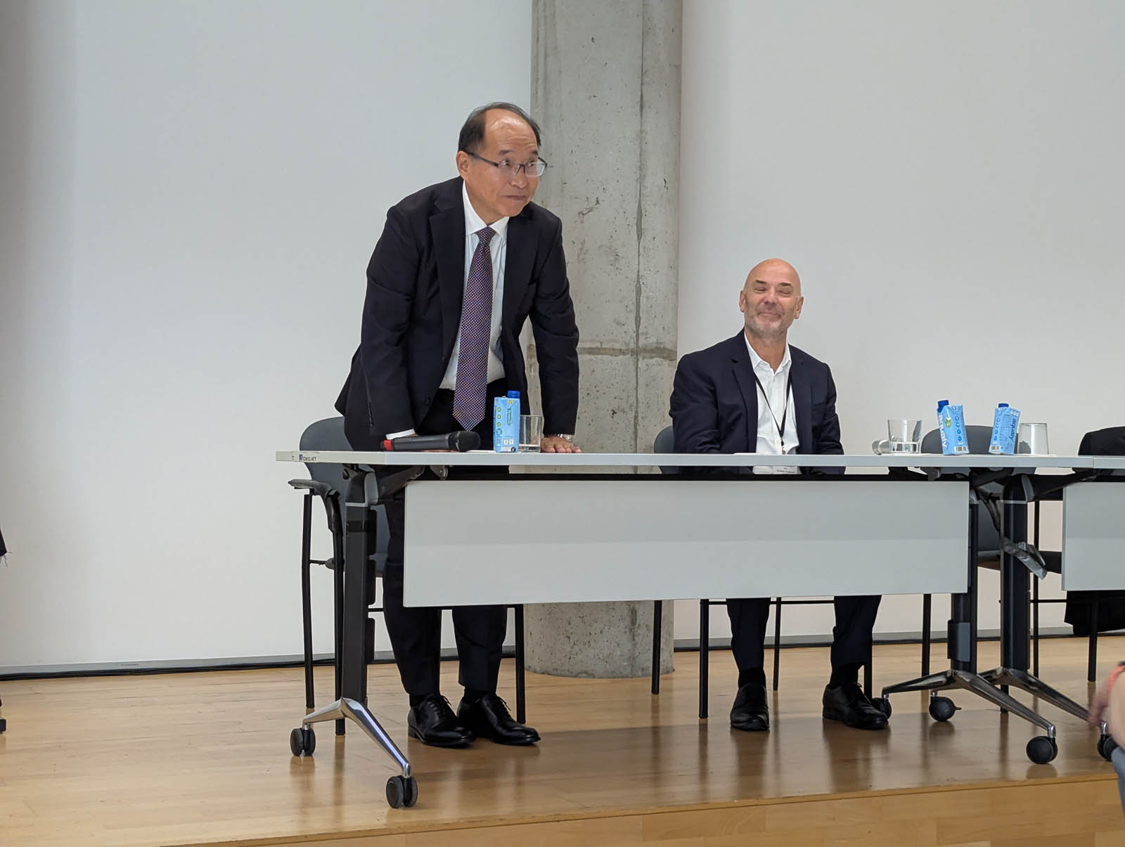 Toshi Uemura har titeln Executive Officer and Head of Industrial Print, Konica Minolta Europe. Han var stolt över att kunna berätta att man under de tio åren sedan introduktionen har placerat ut över ettusensjuhundra maskiner på världsmarknaden. Fördelningen mellan Europa, USA och Asien är tämligen lika procentuellt sett.