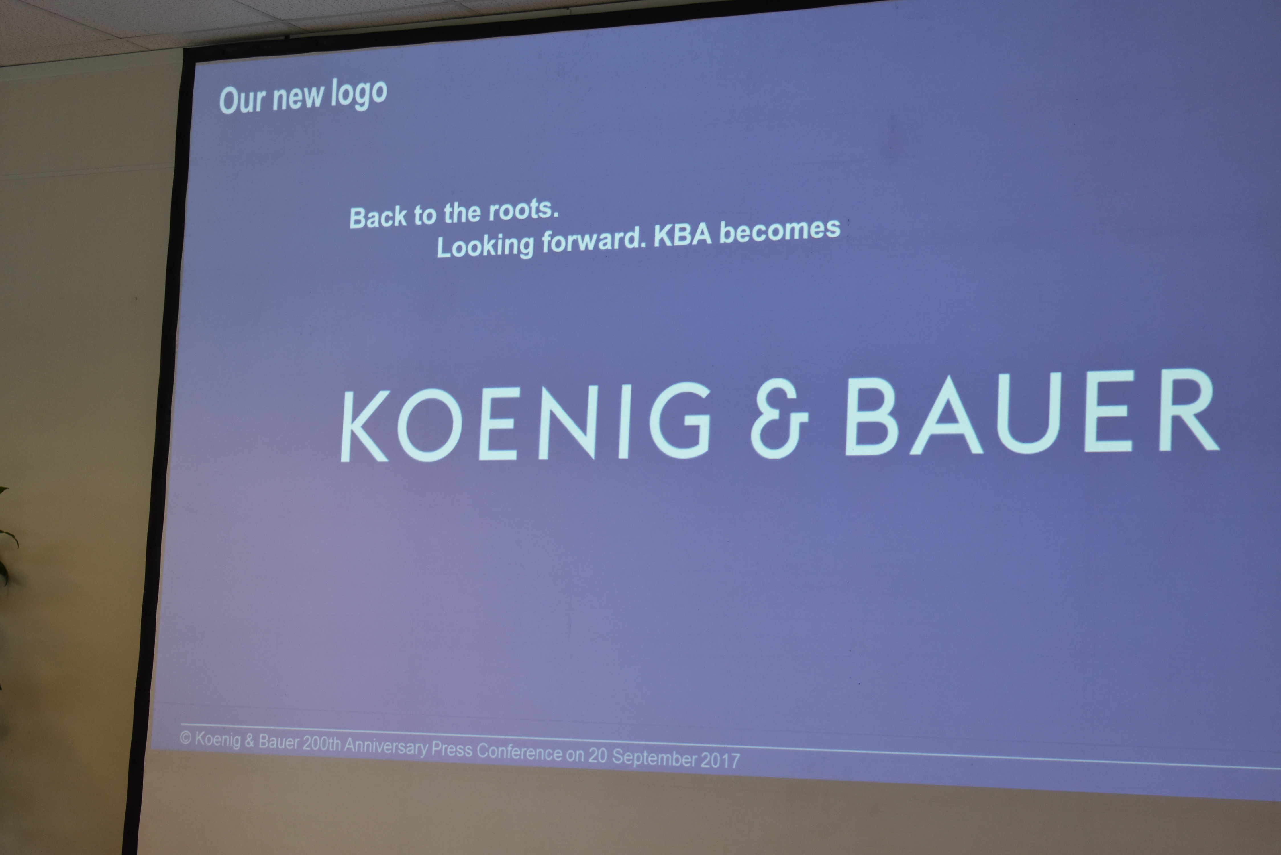 Den stora nyheten som avslöjades var att man avtäckte företagets nya grafiska profil. KBA ska fasas ut till att bli kort och gott Koenig & Bauer. Den nya designen implementeras på såväl alla produkter liksom hela marknadsföringskedjan och bolagen knutna till koncernen. Man marknadsför sig även med en ny slogan ”We´re on it”. Koenig & Bauer ville inte avslöja hur mycket pengar som pumpas in för att forma det nya varumärket och implementera det i hela kedjan.
